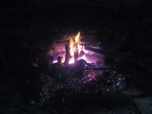Le gambe allungate e tu che parli guardando la brace.