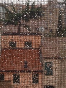 pioveva forte, l’acqua correva lungo le ali del cappello,